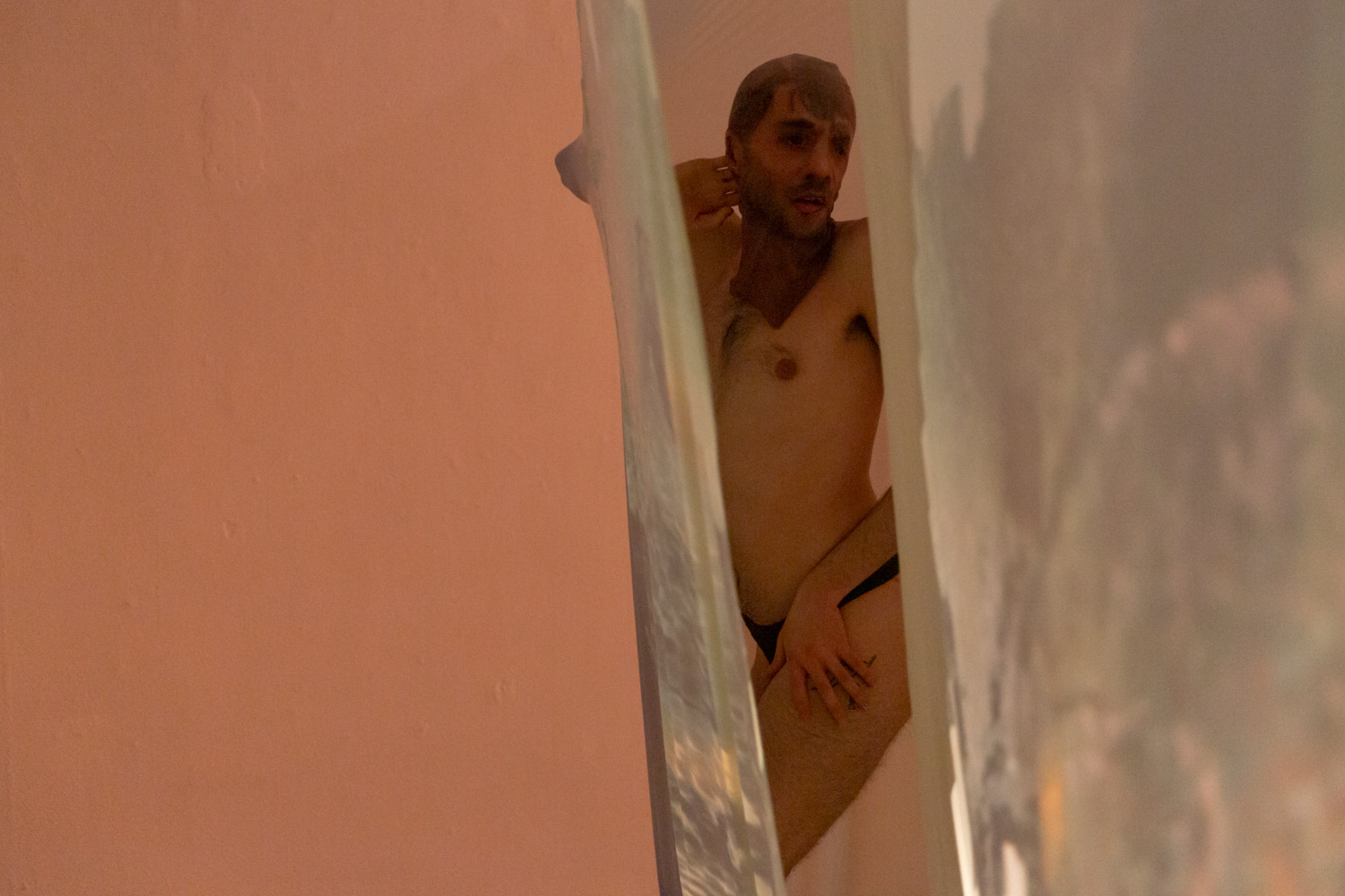 Basing itself on the understanding “plugging precedes play” a seductive sequence of installations negotiates layers of visibility and privacy.
